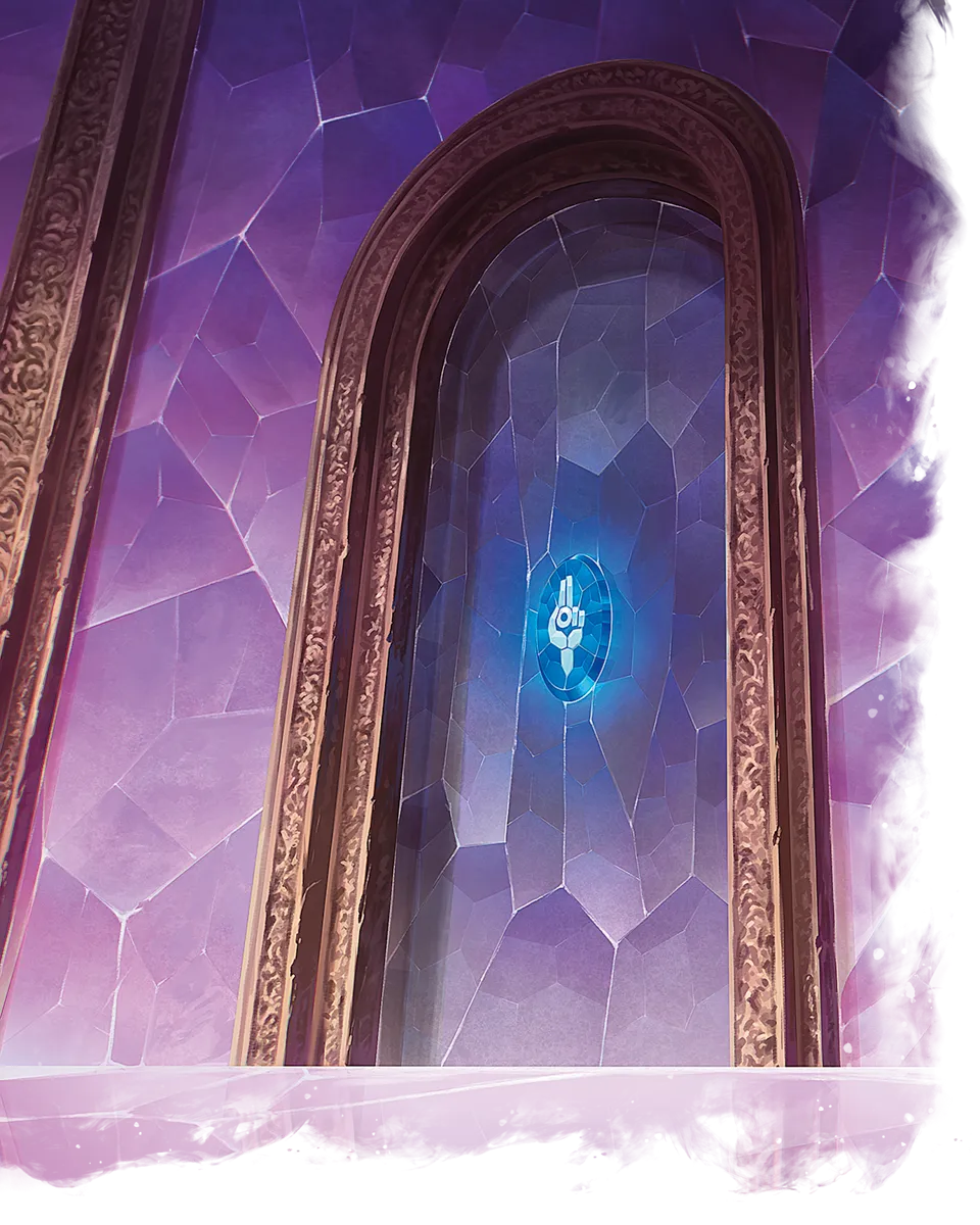 We reach the bottom of the Cave of Shattered Reflections and find a crystalline door. We can feel power from the secrets we recovered over our adventure.