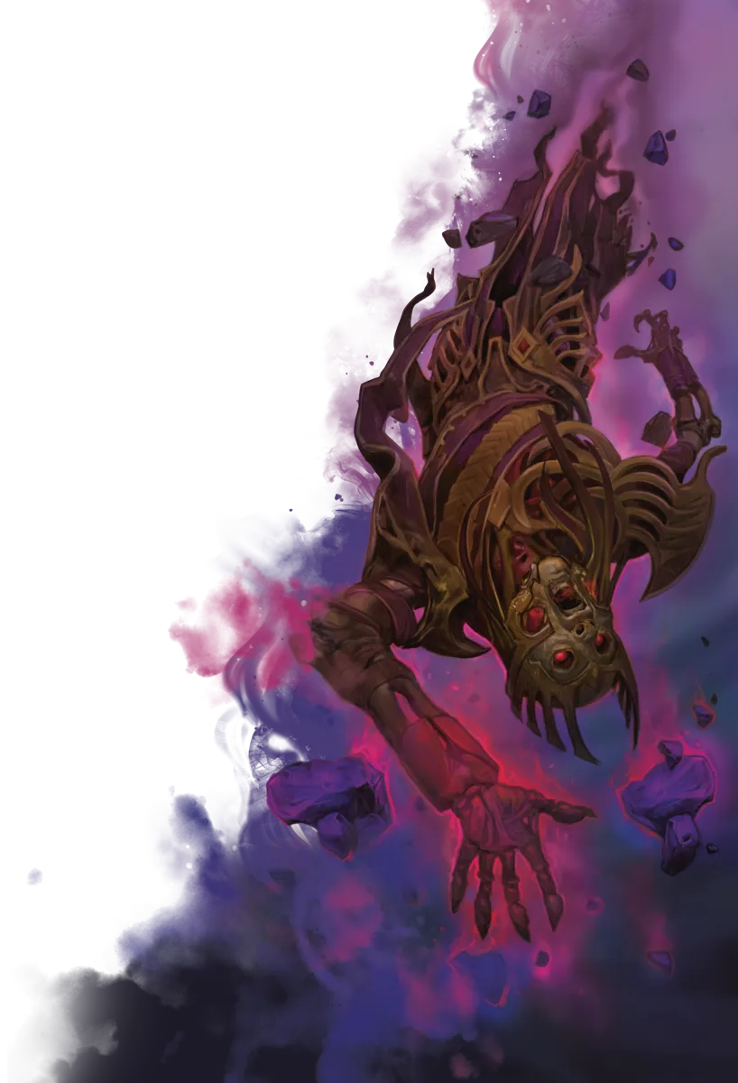 We continue to wail on him. I nearly deal too much damage, but stop short. Pash uses the Chime of Exile to banish Vecna.